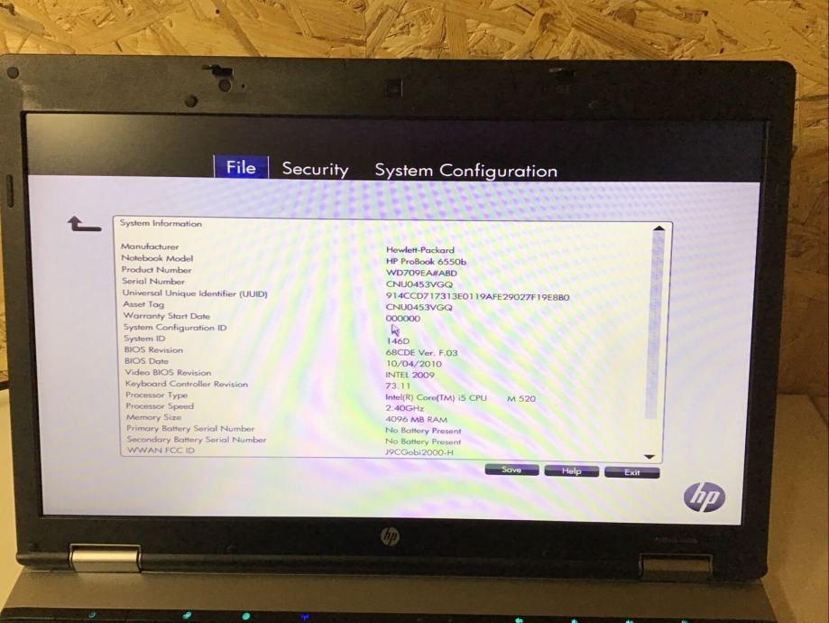 HP ProBook 6550B i5-M520@2,40GHz. 4 GB RAM-a, 500 GB SSD.