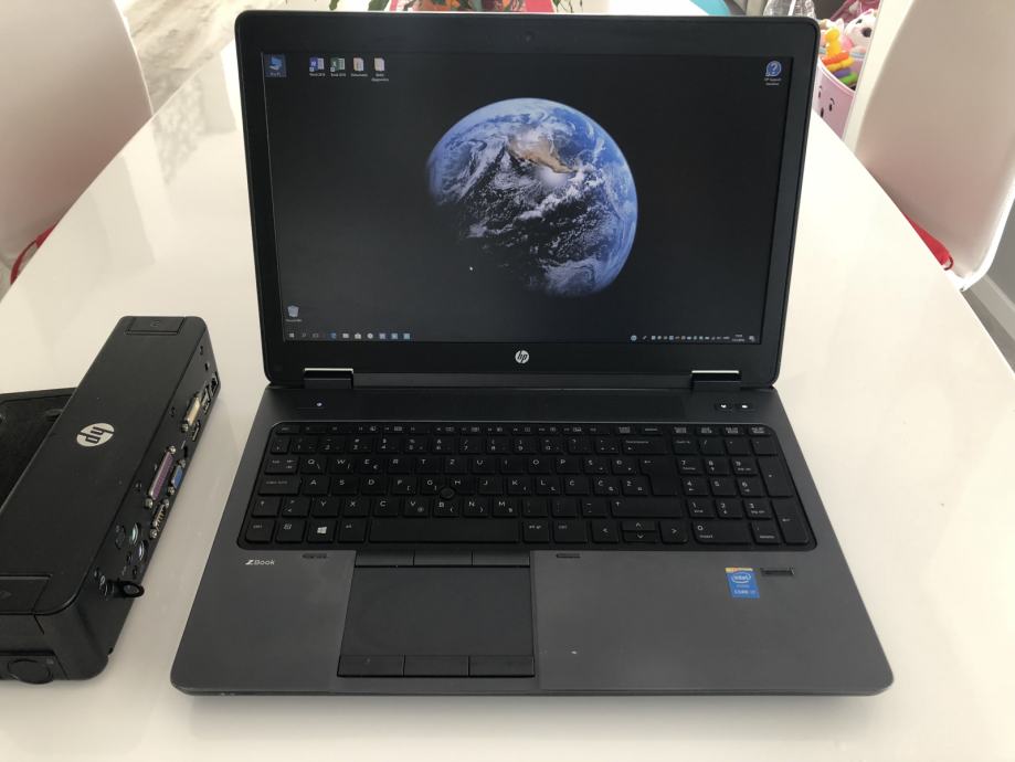 HP ZBook G2 mobilna radna stanica, stara točno 3,5 g, plaćena preko 20 tisuća kuna. Uz nju idu dva punjača, docking station HSTNN-I11X.