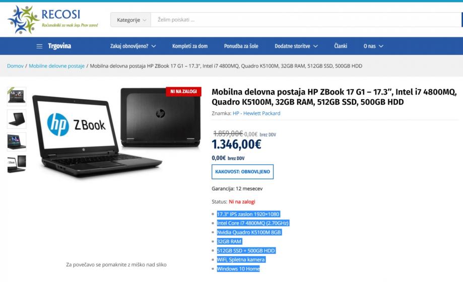HP ZBook 17 G1,17.3″, Intel i7-4800MQ, Quadro K3100M, 32GB, 512GB ,W10
