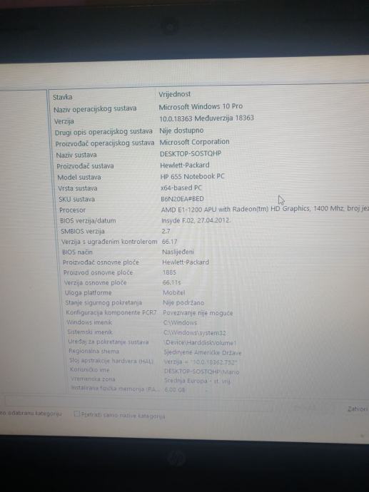 Potpuno ispravan 320 hd 6 giga rama windows 10 pro batrija 2 sata drži