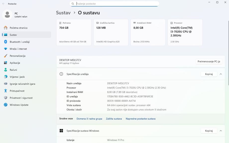- Ostalo: HD WebCam, Wi-Fi, BT, LAN, HDMI, USB, Čitač kartica, Audio, itd.