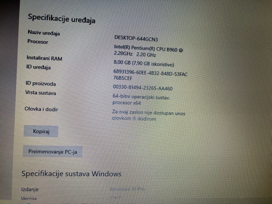 Ima ssd disk,Windows 10 Pro kodovi licence za Windows 10 Pro su kupljeni i dolaze uz Laptop,torba za laptop.