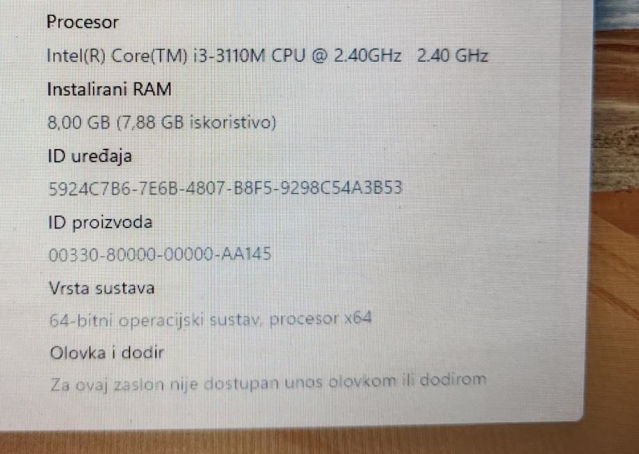 Prodajem ispravan i3 laptop s Radeon grafikom ssd diskom I licencom za Windows 11 Pro HR