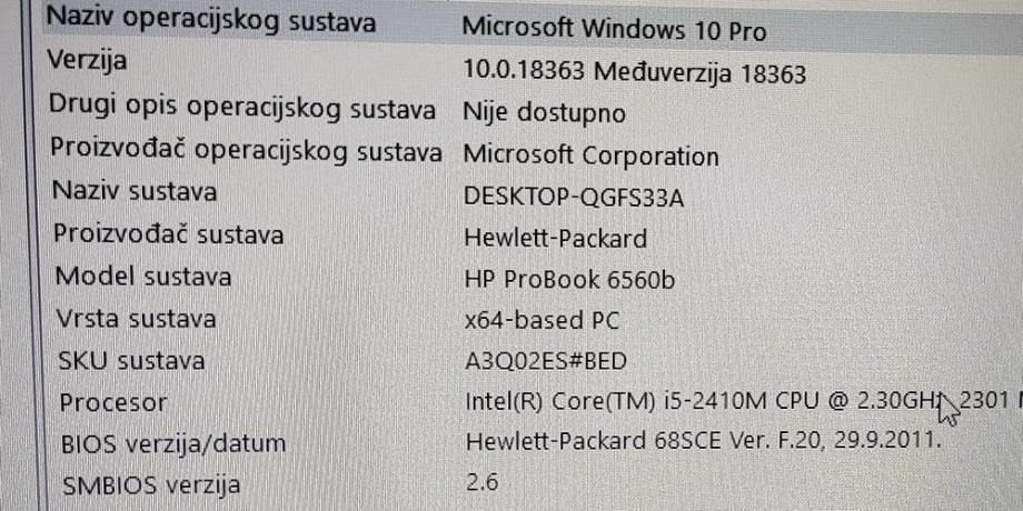 - procesor I5-2430M (2 jezgre, 2.30 ghz)