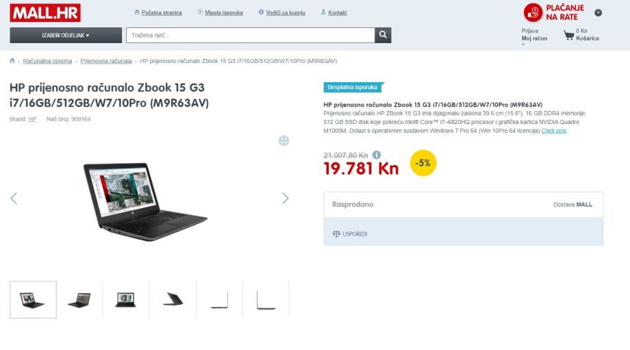HP ZBOOK 15 G3 15 i7-6700HQ 16GB DDR4 256GB Nvme M2000M Rač. 36 RATA