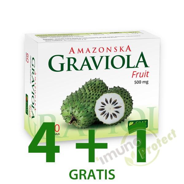 Uz četiri kupljene kutije Amazonske graviole 500 mg 60 kapsula, jednu dodajemo gratis!