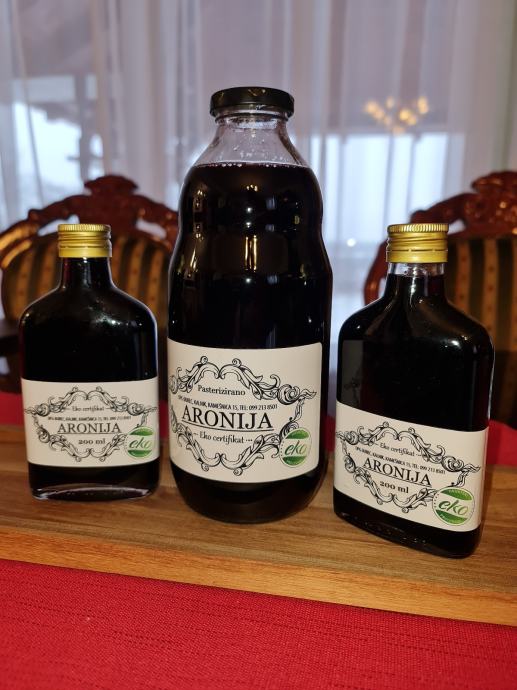 Čisti 100% sok od aronije. Cijena za sok iznosi 10€/litra.