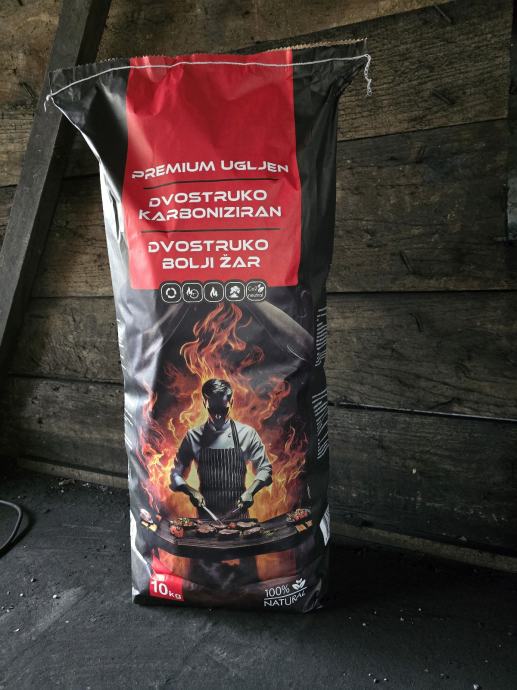 Prosijani drveni ugljen od tvrdog drveta ,dvostruko karboniziran za jači žar i manje dima