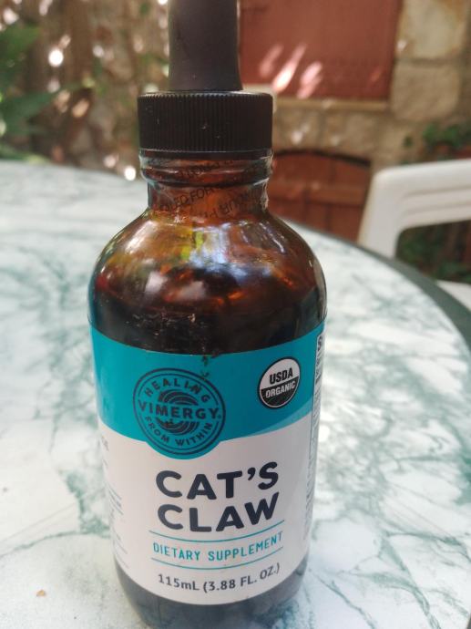 Mačja kandža dodatak prehrani, tinktura. Kvalitetna marka Vimergy. Korišteno samo dva,tri puta. Vidi se na slici da je boca skoro puna. Ima kapaljku, odnosno dozator. Mačja kandža ( cat’s claw ) dodatak je prehrani čiji je primarni sastojak kombinacija atomiziranog ekstrakta i praha kore stabljike mačje kandže (Uncaria tomentosa). Biljka mačja kandža drvenasta je loza podrijetlom iz gorja peruanske Amazone. Poznata i kao "peruanska loza koja daje život". Izuzetno je cijenjena te se smatra svetom biljkom zahvaljujući dugoj tradiciji upotrebe u narodnoj medicini. Koristi se za čišćenje organizma, jačanje imuniteta, uklanjanje parazita ... Prodajem za 10 eura + pt. Šaljem Tiskom, poštom i boxnow-om.
