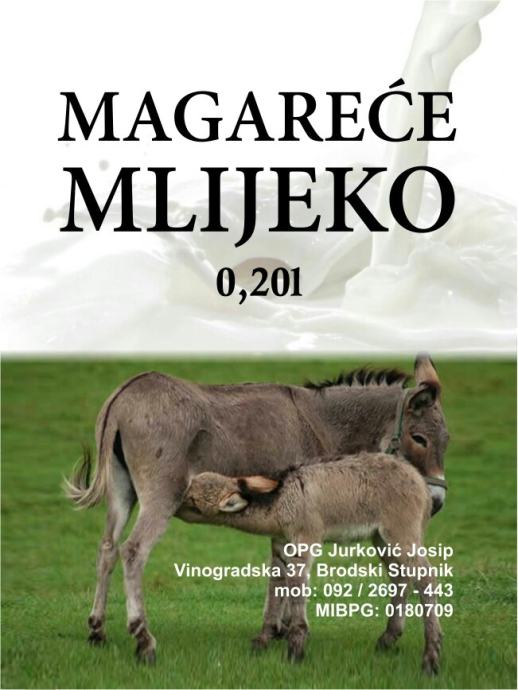 prodajem magarece mlijeko pakovao u bocice od 1dcl. moguca dostava. cijena jedne litre 40 eura. Više informacija na http://opgmedimlijeko.hr ili na broj mobitela 0922697443