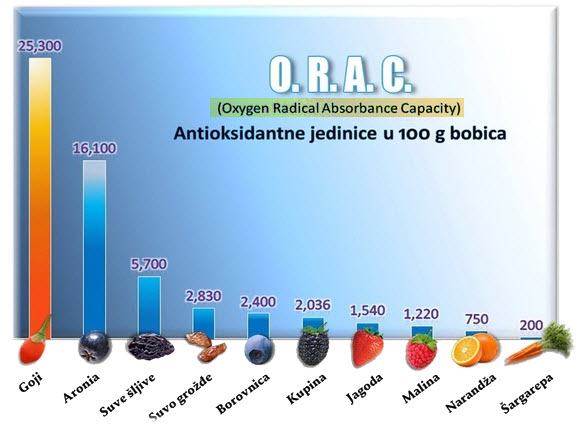 Goji bobice (lycium barbarum) koju zbog tvari koje dižu količinu seratonina (hormona sreće) u krvi, još zovu bobicom sreće, porijeklom je iz središnje Azije. Od davnina ova biljka se smatra plodom zdravlja, ljepote, vitalnosti i dugovječnosti. Radi mnoštva antioskidanasa, vitamina A, B, D, P te čak 11 karotenoida koji uključuju beta-karoten, flavonoide, polisaharide i zeaksantine goji bobice se koriste za usporavanje starenja i dizanje imuniteta