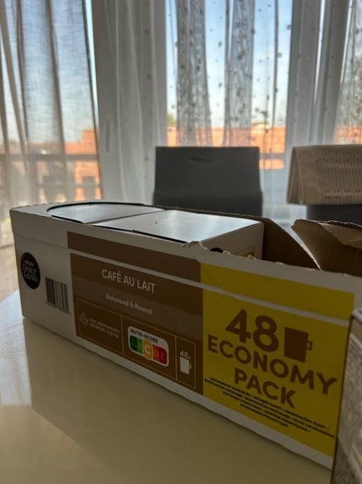 Nescafe Dolce Gusto 48 economy pack, cafe au lait. Krivo naručene, drukčiji aparat (Nespresso) pa prodajem za nekoga tko ima Dolce Gusto. Naručeno preko mall.hr za 13,50€. Prodajem za 12€.