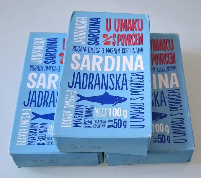 36 kom. od 100g i 20 kom. od 50g --- 20 eur. GRATIS 3 konzerve sardina sa povrćem