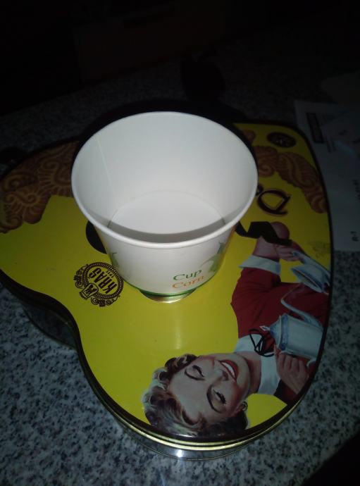 --papcup kartonske čaše zapremnine 0,25l za sladoled ili nešto slično. Na sebi imaju natpis Cup Corn jer se prodavao kukuruz u zrnu.