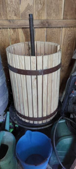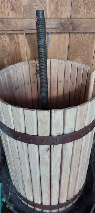 Obnovljena preša za grožđani i voćni masulj, 120 litara, razmak između letvica do 3 mm.