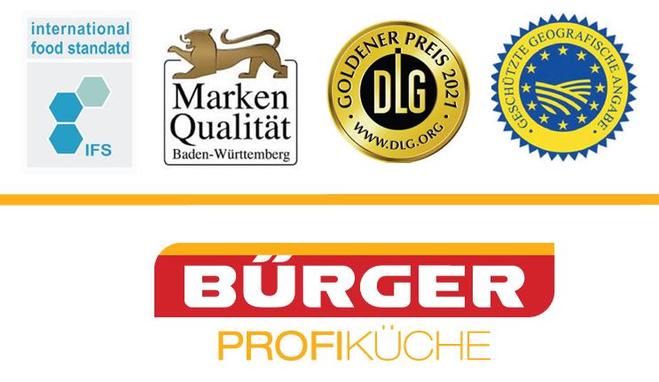 - su proizvodi besprijekorno kvalitetni - u osiguranju kvalitete svakodnevno se prate svi proizvodni procesi. Poštuju se svi zakonski standardi i stroga provedba IFS-a (International Food Standard). BÜRGER je u 2023. godini dvanaesti put nagrađen "Nagradom za dugoročnu kvalitetu proizvoda" od strane Centra za ispitivanje hrane DLG (Njemačko poljoprivredno društvo). Nagrada označava dosljednu težnju za kvalitetom i dodjeljuje se samo ako DLG redovito i uspješno testira hranu najmanje pet godina.