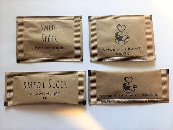 - šećer smeđi 5g, 300 kom