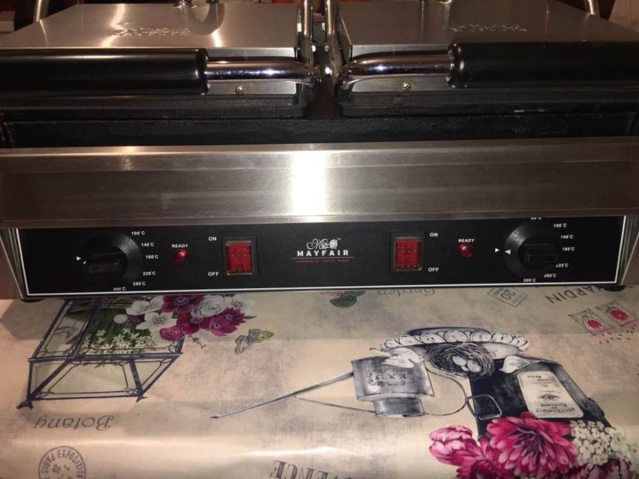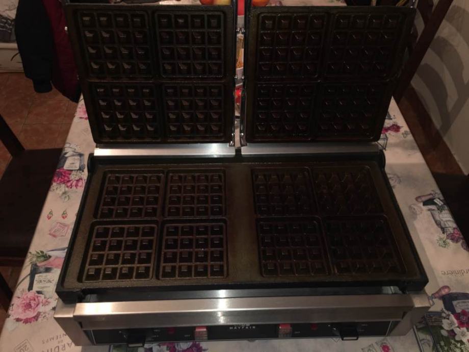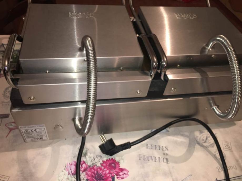 Uredjaj je donet iz Svajcarske nov, pekli smo par puta vafl za licnu upotrebu. . . vrhunska je stvar za brze hrane i restorane. . . kao nov je! Prvi put kad je ukljucen ploce su obgorele i sada je spreman za maksimalno koriscenje, moze da radi odvojeno leva i desna strana. . . cena 650€