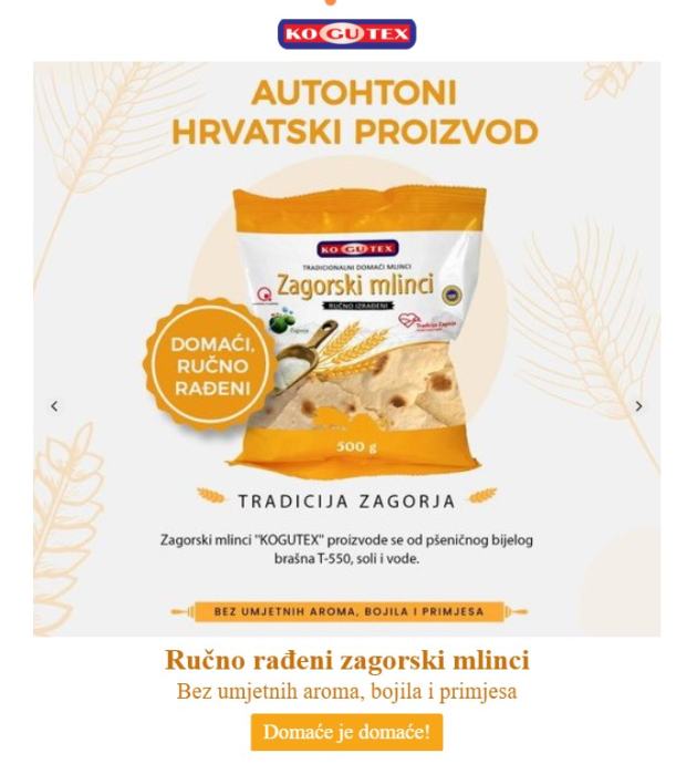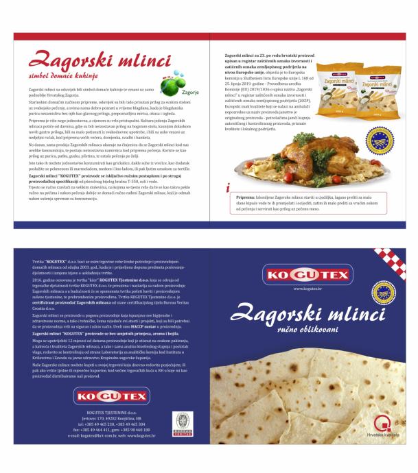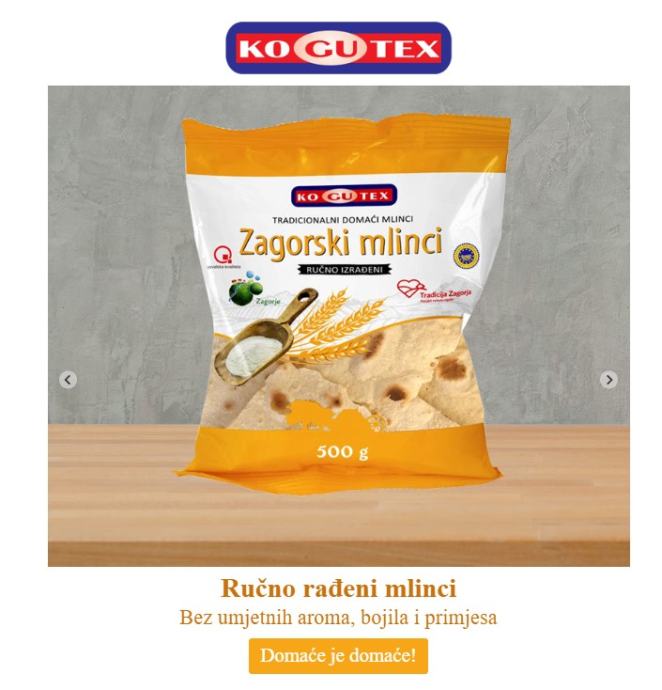 Zagorske mlince proizvodimo u pakiranju od 500gr koje je prepoznatljivog vizualiteta i modernog dizajna.
