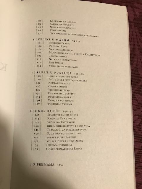 Ova ujevićevska Kolajna od šutnje kao jeka kolajne od Riječi, spletena je od zrnaca naizmjence nevidljivoga i vidljivoga, ljudskoga i Božjega: ljubavi, ljepote, nadahnuća, dobrote, vjere, mjere, meditacije, molitve, govora i šutnje.(iz tiska)