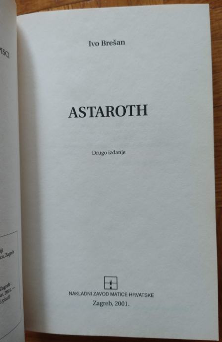 Prodajem novu knjigu Astaroth, drugo izdanje, autor Ivo Brešan, izdavač Nakladni zavod Matice Hrvatske, 2001. godina. Knjiga ima 411 stranica i bez oštećenja je. Imam više komada.