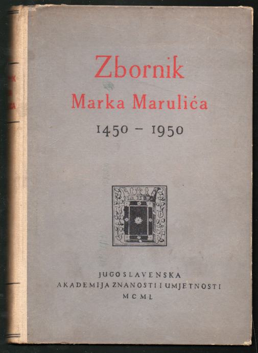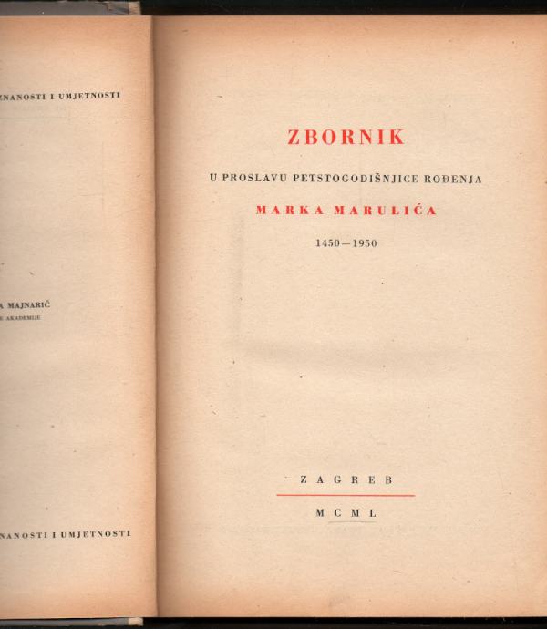 Badalić, Josip | Majnarić, Nikola (ur.) - Zbornik u proslavu petstogodišnjice rođenja Marka Marulića : 1450 - 1950