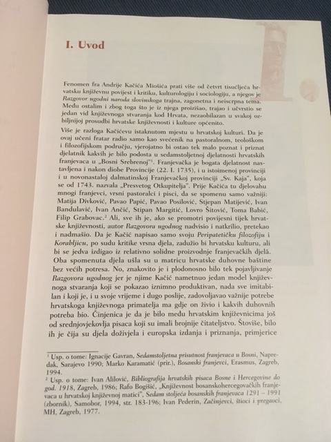 Fenomen fra Andrije Kačića Miošića prati više od četvrt tisućljeća hrvatsku književnu povijest i kritiku, kulturologiju i sociologiju, a njegov je Razgovor ugodni naroda slovinskoga trajna, zagonetna i neiscrpna tema. Medu ostalim i zbog toga što je iz njega proizišao, trajao i učvrstio se jedan vid književnoga stvaranja kod Hrvata, nezaobilazan u svakoj ozbiljnijoj prosudbi hrvatske književnosti i kulture općenito.
