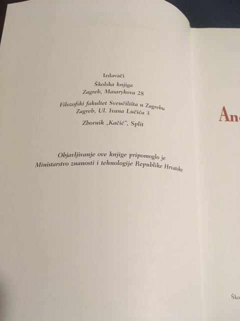 Nakladnik: Školska knjiga - Filozofski fakultet - Zbornik "Kačić"