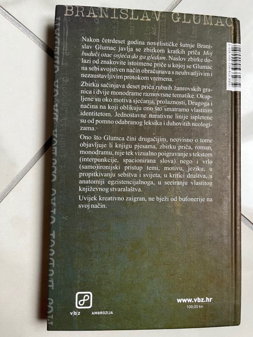 Nakon četrdeset godina novelističke šutnje Branislav Glumac javlja se zbirkom kratkih priča Moj budući otac osjeća da ga gledam. Naslov zbirke dolazi od znakovite istoimene priče u kojoj se Glumac na sebi svojstven način obračunava s neuhvatljivim i nezaustavljivim protokom vremena. Zbirku sačinjava deset priča rubnih žanrovskih granica i dvije monodrame raznovrsne tematike. Okupljene su oko motiva sjećanja, prolaznosti, Drugoga i načina na koji oblikuju ono što smatramo vlastitim identitetom. Jednostavne narativne linije ispletene su od pomno odabranog leksika i duhovitih neologizama.