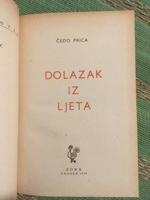Čedo Prica ( Plitvice, 1931. – Zagreb, 2009.) Pjesnik, prozaik, dramatičar i esejist. Tih i samozatajan, bio je značajna ličnost hrvatske kulture zadnjih pedesetak godina. Dolazak iz ljeta, zbirka poezije iz 1959. Prvo izdanje.