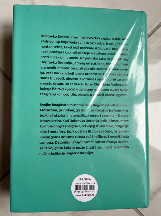 Dubravko Detoni u formi dnevničkih zapisa, dakle svakodnevnog bilježenja svijeta oko sebe, ispisuje fascinantan tekst, tekst koji možemo iščitavati i kao prozu i kao poeziju i kao mikroeseje o svakodnevici, prolaznosti ili pak umjetnosti. No jednako tako, ili još važnije, Dubravka Detonija, jednog od naših najznačajnijih suvremenih kompozitora, nikada nije zanimala samo poruka, već i način na koji je ona prenesena. Detonija zanima sama bit riječi, njezina izvornost i njezino pretvaranje u nešto drugo. On se vraća Hansu Christianu Andersenu, kojega iščitava dječački zaigrano pa potom stvara svoju razigranu kompoziciju, pjesmu u prozi ili prozu u pjesmi. Svojim imaginarnim intimnim dijalogom s Andersonom, Mozartom, prirodom, glazbom, ali nadasve jezikom – jer jezik je i glazba i matematika, i umno i zaumno – Detoni iznova kreira. Kod Dubravka Detonija jezik je instrument kojim se on igra i poigrava, od kojeg stvara nove, drugačije slike i metafore, jezik postaje ili, bolje rečeno, ostaje osnovna građa ne samo teksta već i mišljenja i promišljanja samoga.