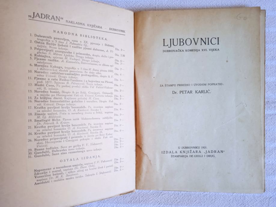 dr.Karlić (ur) Ljubovnici Dubrovačka komedija XVI v Dubrovnik 1921 g