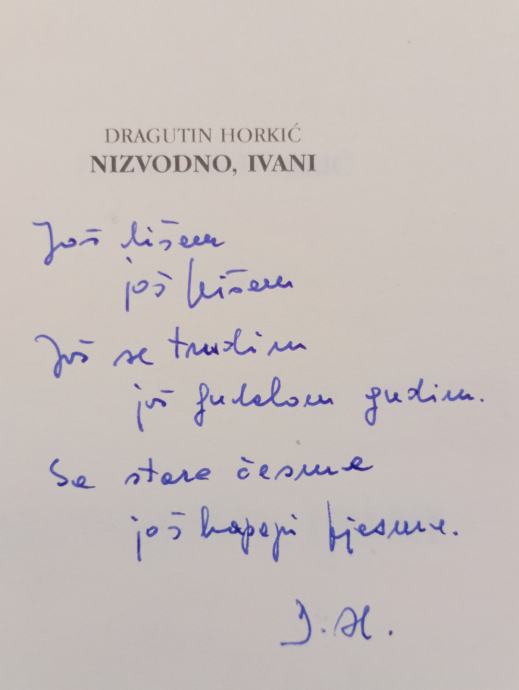 Dragutin Horkić: Nizvodno, Ivani. ( podpis autora)