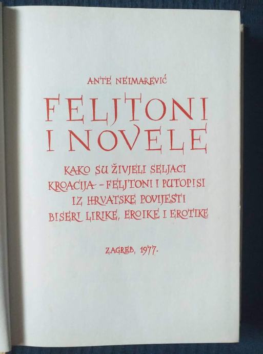 izdavač Dražen Neimarević, Zagreb 1977. godine, 18 x 25 cm, tvrdi uvez i papirnati omot, 376 stranica.