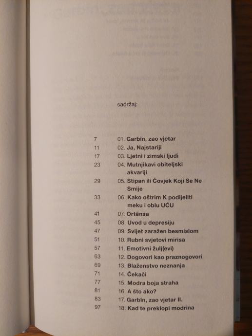 Roman-prvijenac autorice koja živi i radi na otoku Visu što pričama, jezikom i atmosferom nemalo obilježava njezinu romanesknu poetiku. Motivacija za propitivanje ljudskih razloga, ishoda želja i ponašanja jest podijela obiteljskog imanja oko kojeg se četvero braće nikako ne mogu niti dogovoriti niti ga podijeliti međusobno, postajući si pritom stranci i neprijatelji, u stalnoj želji da napakoste jedan drugome. Sadrži rječnik manje poznatih riječi.