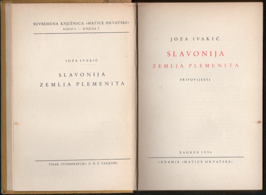 Ivakić, Joza - Slavonija zemlja plemenita : pripovijesti