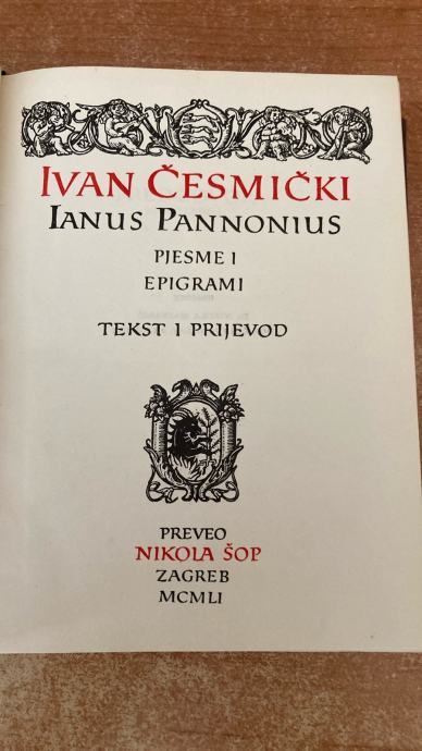 IVAN ČESMIČKI IANUS PANNONIUS:PJESME I EPIGRAMI,PREVEO NIKOLA ŠOP