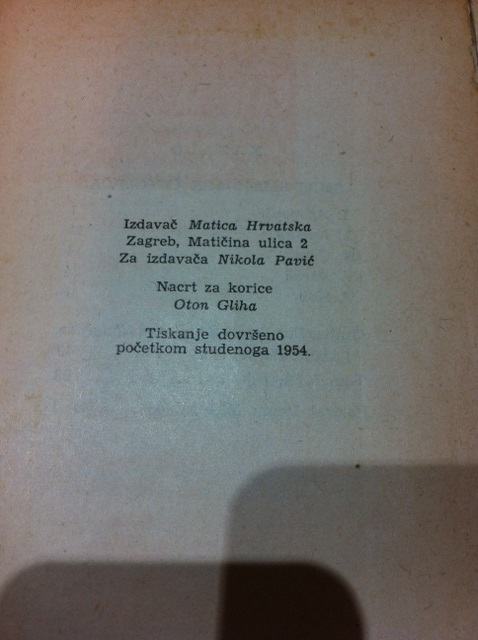 Impresum: Zagreb : Matica hrvatska , 1954