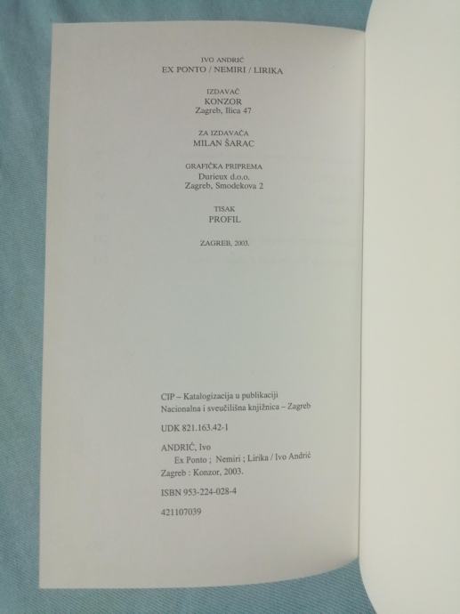 Ivo Andrić – Ex ponto, Nemiri, Lirika