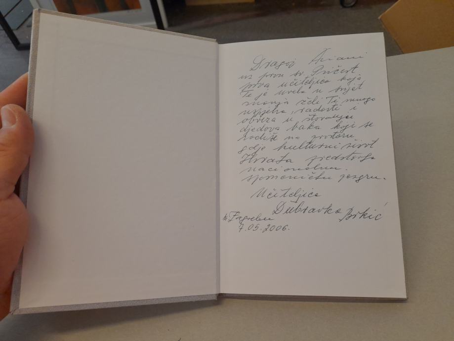 U odličnom stanju, izuzev minimalnih oštećenja na omotu knjige, ima posvetu nekome na prvoj praznoj stranici, što je vidljivo na priloženim fotografijama.