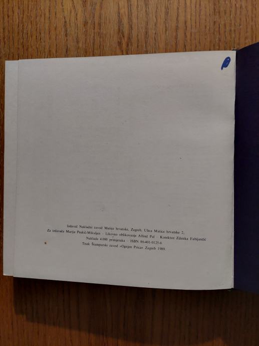 - Izdavač : Nakladni zavod Matice hrvatske , Zagreb, 1989.