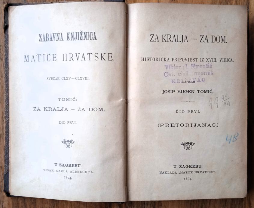 ZA KRALJA ZA DOM Josip Eugen Tomić 1894