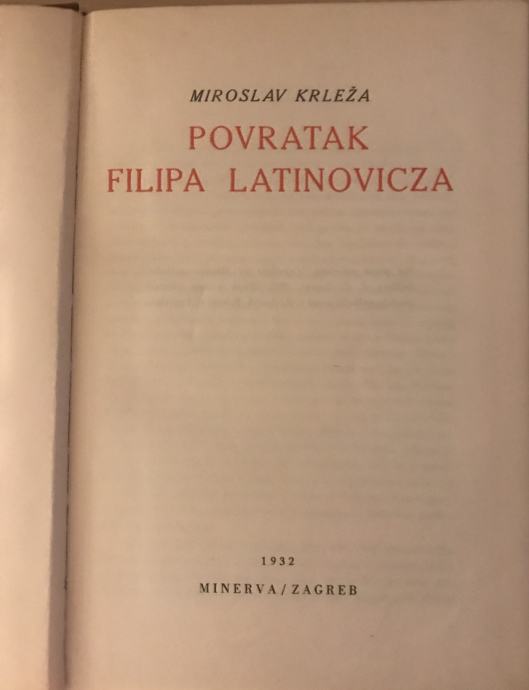 Krleža,Miroslav : Povratak Filipa Latinovicza