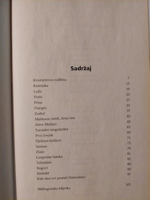 Zbirka priča od kojih je dio prethodno objavljen u različitim novinama i časopisima ("Večernji list", "Republika", Tema"…) svestranog autora koji se bavi književnošću (roman "Topli zrak", zbirke priča "Čudovište" i "Qwertzu i Opš"), glazbom, radom na radiju. Sadržajno zanimljive, ispunjene vještim dijalozima i likovima koji ih izgovaraju, luckastim događajima i njihovim neminovnim posljedicama, priče u ovoj knjizi dio su svekolike hrvatske urbane pop-kulture. U knjigu je uvrštena i nagrađena kratka priča "Kak smo svi postali Dalmatinci".