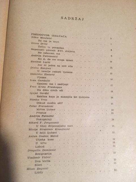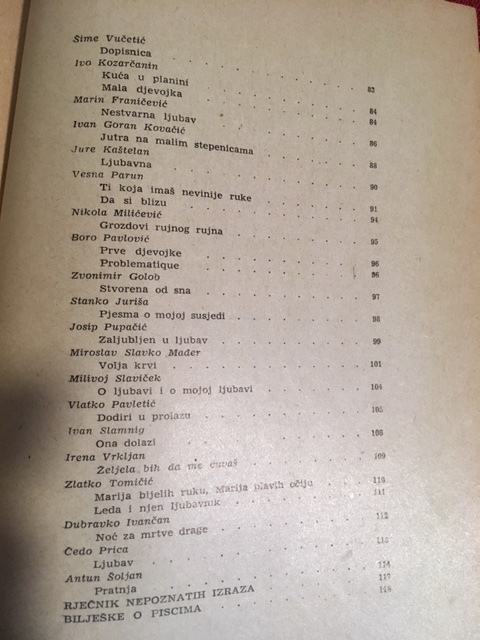 Ljubav pjesnika, mala antologija hrvatske ljubavne poezije, 1956.