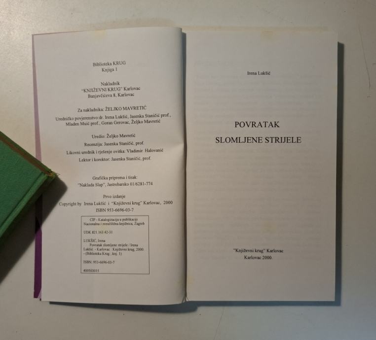 Biblioteka Krug, knjiga 1. Str. 5-6: Predgovor / Jasenka Staničić. Hrvatska književnost. Romani, novele, pripovijetke.