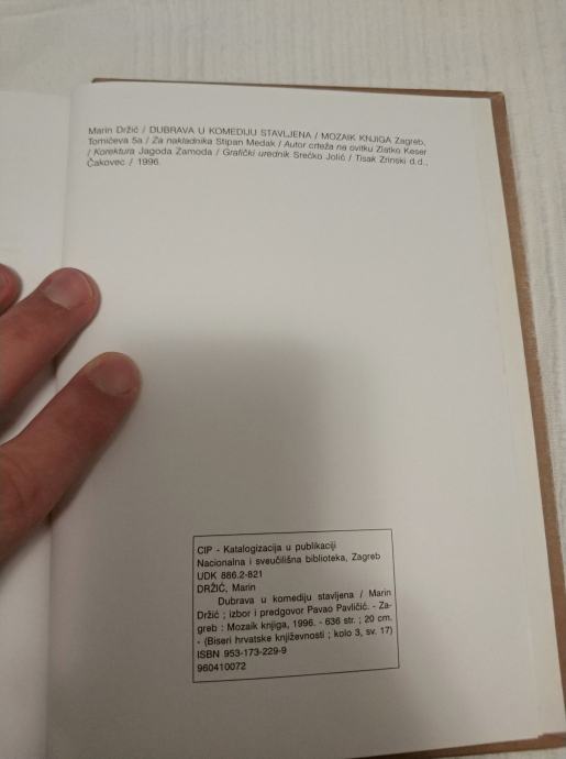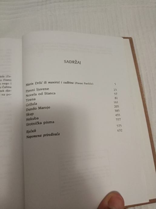 U izuzetnoj biblioteci 'Biseri hrvatske književnosti' Mozaika knjiga, koju je uređivala Đurđa Mačković, objavljen je izbor najvažnijih Držićevih djela: Pjesni ljuvene, Novela od Stanca, Tirena, Grižula, Dundo Maroje, skup, Hekuba, Urotnička pisma. Sve najbolje od Držića na jednom mjestu! Tekstove izabrao i napisao predgovor Pavao Pavličić.