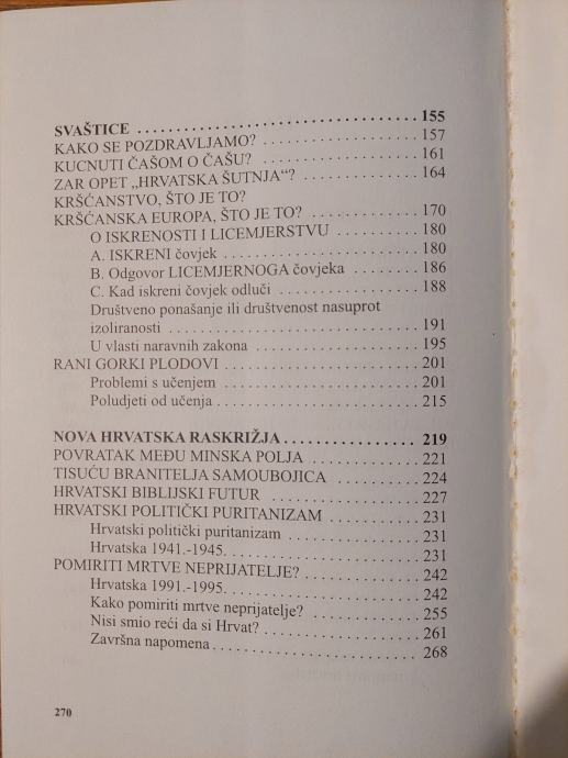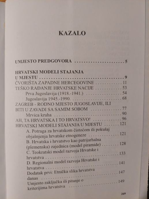 Knjiga znakovitog naslova dovršena je 1996. godine, ali je autor nije odmah objavio zbog političke situacije. Ugledni novinar promišlja najprije pitanje Hercegovaca i Hercegovine u prošlosti i u vremenu stvaranja te ustoličenja hrvatske države. S tim u vezi nastat će i vrijedni ogledi o hrvatstvu, njegovoj metropoli i, kako autor kaže - hrvatskim modelima stajanja u mjestu, što se odnosi prije svega na razvoj Hrvatske i njezinih regionalnih i etničkih problema (zadirući u pojam patrijarhalnog i plemenskog). Jednako su tako sažeti i razvidni ogledi o kršćanskoj Europi, licemjerstvu i iskrenosti, ponovljenoj hrvatskoj šutnji te, na kraju, o novoj hrvatskoj državi, njezinu razvoju, problemima branitelja, hrvatskom političkom puritanizmu i pomirbi povijesno zavađenih političkih strana.