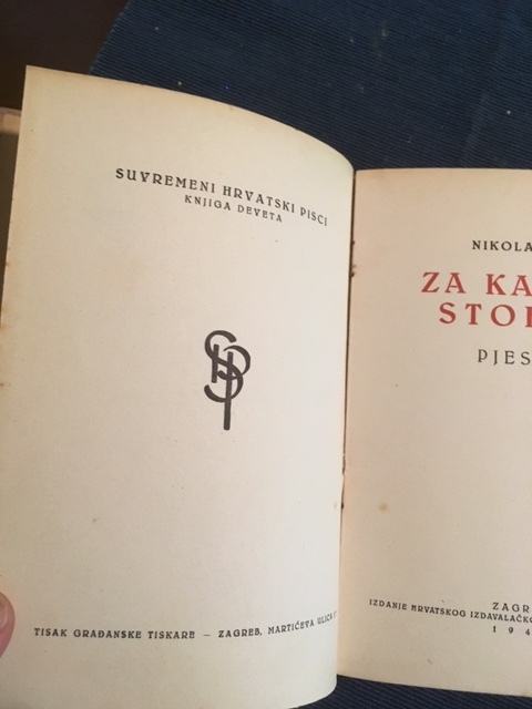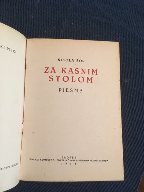 Nikola Šop, Za kasnim stolom, 1. izd. 1943.