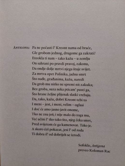 Okomiti svijet, svijet koji kao posljednje utočište treba prvo vratiti svoje zaboravljeno »plemstva duha« o kojemu je tako sjajno i poodavno proročanski pisao Nietzsche, a »parafrazirao« ga naslovom svoje knjige Rob Rieman(4), biljka je koja se kao »cviće bez vode« suši u sudbonosnoj plimi recentnoga nihilizma, površnosti i ravnodušnosti našega vlastitoga, distopijskoga, profanoga vremena, koje više ne prepoznaje baš ništa od onoga tipa svetosti koje čuvaju mitska, religijska ili posve jednostavno, književna riječ zagledana u najobičniju, životodajuću dalmatinsku i svaku drugu maslinu. Uostalom, zar nedostižni Béla Hamvas nije napisao da ako hoćemo spoznati božansko, jednostavno sjednemo u krošnju trešnje! Legenda kaže da primjerice, »Jasmin i maslinu« (gle čuda, op. a.) dugujemo njegovim ljetovanjima na Korčuli!